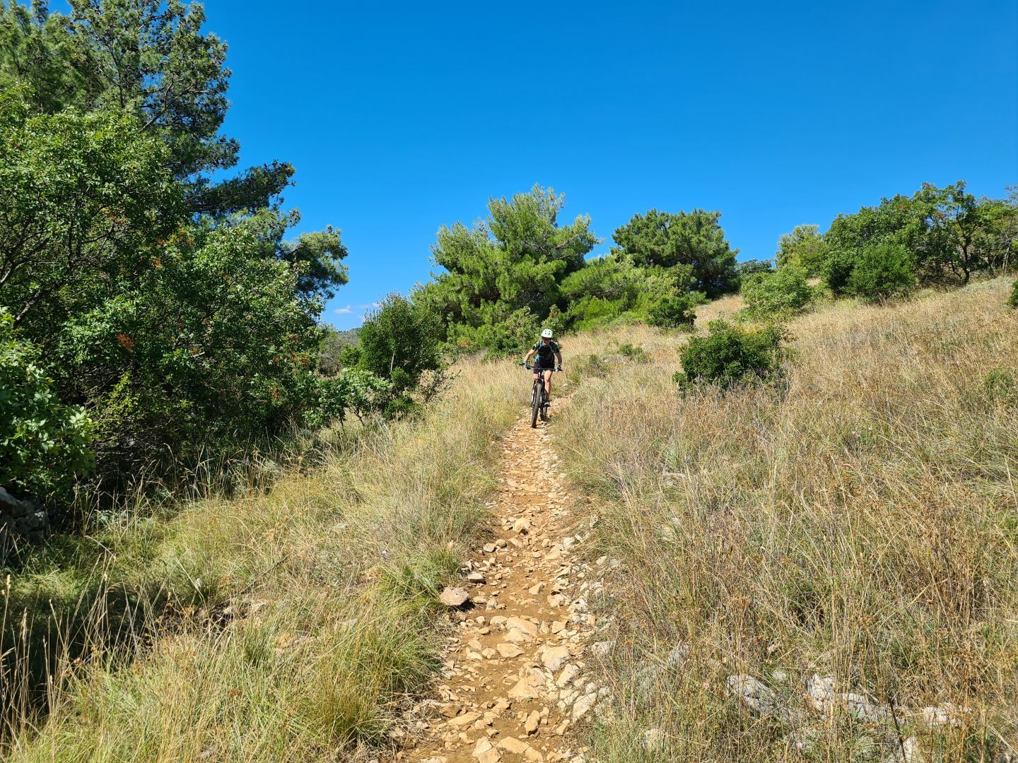 Bolj ali manj po poti najkraše trase mtb dirke Valamar Terra Magica - povzeto po "Skrite poti". V izogib zadnjega dela spusta po poti vzpona sva se raje odločila za spust po Bike park Rabac - Espresso. Priložena gps sled je iz "Skrite poti" - kot zapisano, sva zadnji del vozila drugje.