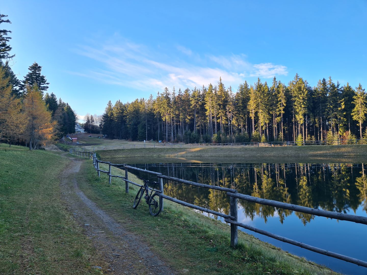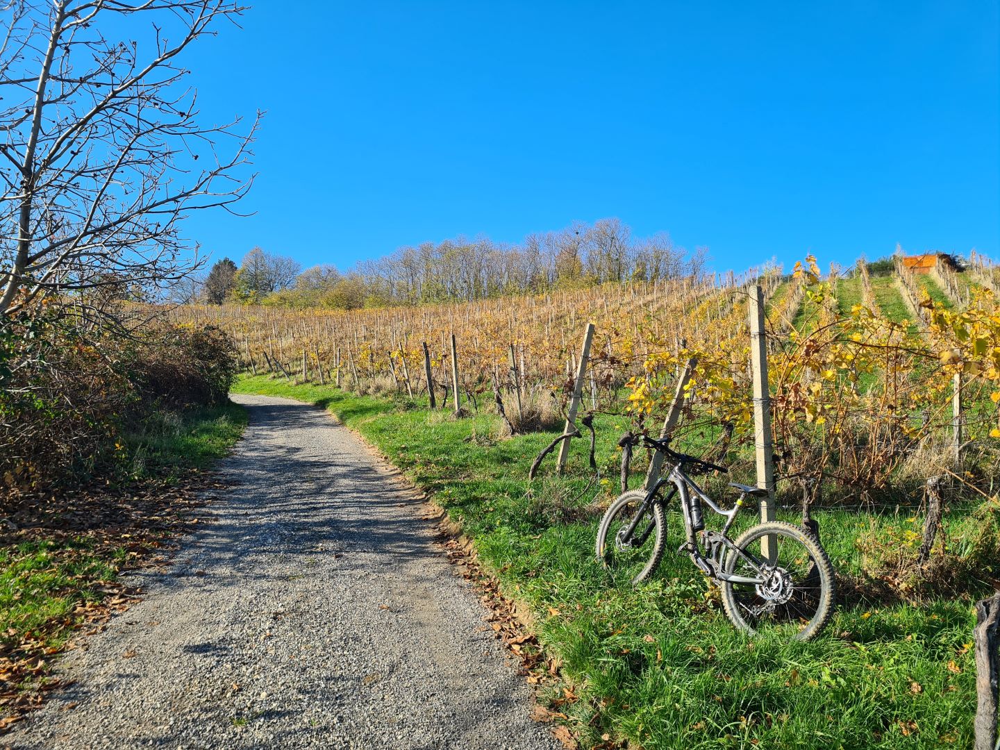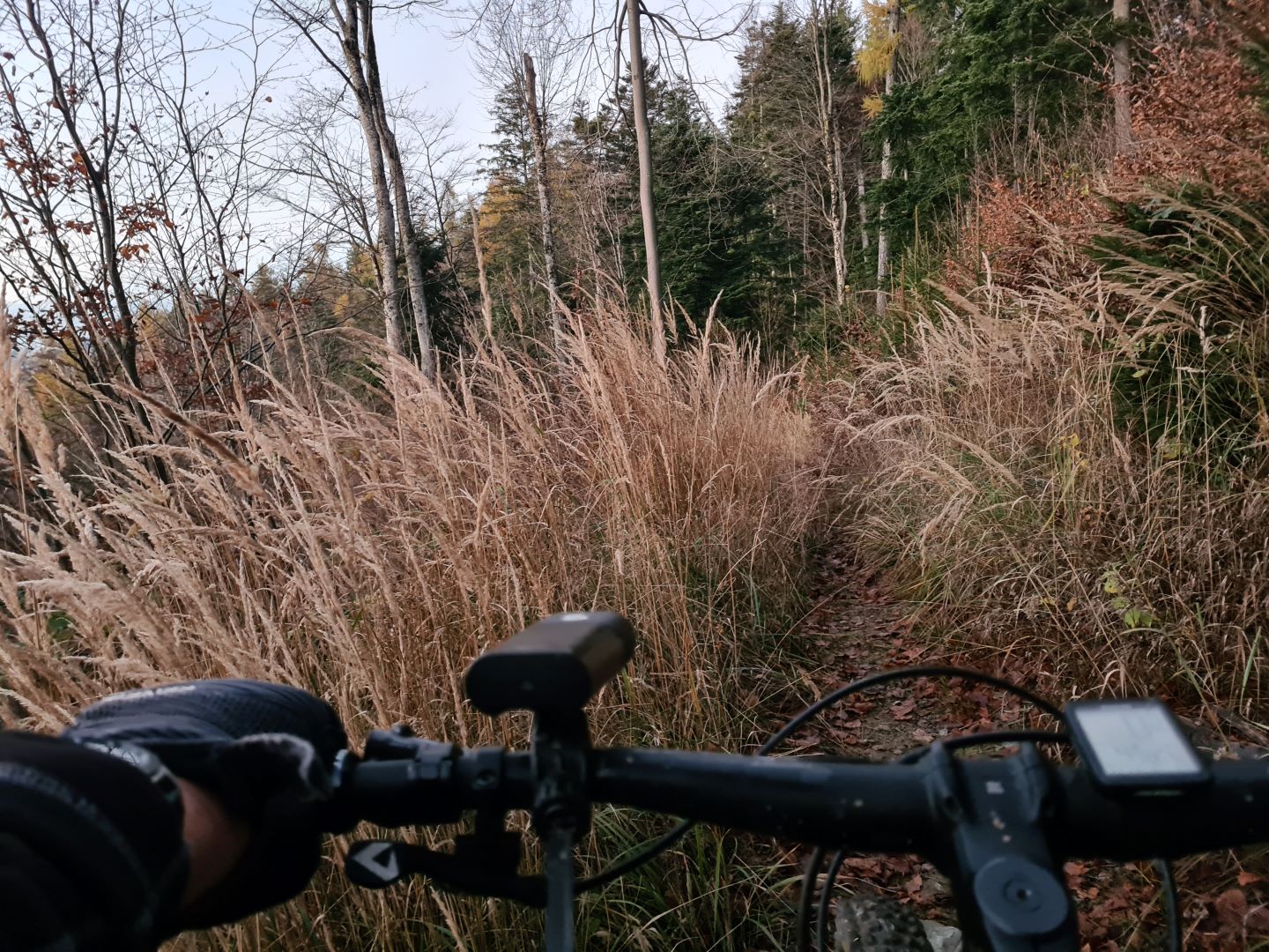 spust proti Pečkam - nad njimi vklop luči in nadaljevanje v temi