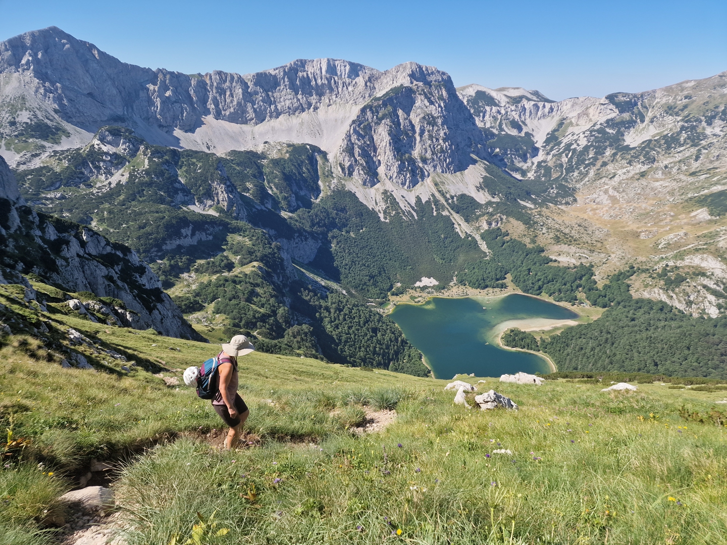 Komentar S Hvara sva se za tri dni odšla hladit v južno Bosno ali vzhodno Hercegovino(?) - v vsakem primeru v Republiko Srpsko. Ta nepozabna krasna tura se začenja na planini Prijevor (1665 m), do koder sva se po ne najboljši gozdni cesti pripeljala pribl. 15 km iz Tjentišta (sedež NP Sutjeska). Prespala sva v avtu. Pod samim vrhom Maglića je par metrov zajl, a pot ni preveč zahtevna in bi komot šlo tudi brez njih. Maglić (2386 m) je najvišji vrh BiH. Nadaljevanje poti po grebenu poteka tudi čez 2 m višji Crnogorski Maglić. Sledi tečen, a razgleden spust proti Trnovačkemu jezeru (1517 m) in presenetljivo prijeten vzpon (prej se še spustimo za 150 m) nazaj na Prijevor. Tura je opisana v knjigi Zehrudina Isakovića Planine Bosne i Hercegovine - 50 izabranih uspona (tura št. 24). Čas 6h-6.30 iz tega vodnika kar drži. Najinih 7 ur vključuje še poležavanje na obeh vrhovih, kopanje v jezeru ter pivo in kafe ob jezeru. Dodatne fotografije še pri Andrejknem opisu.