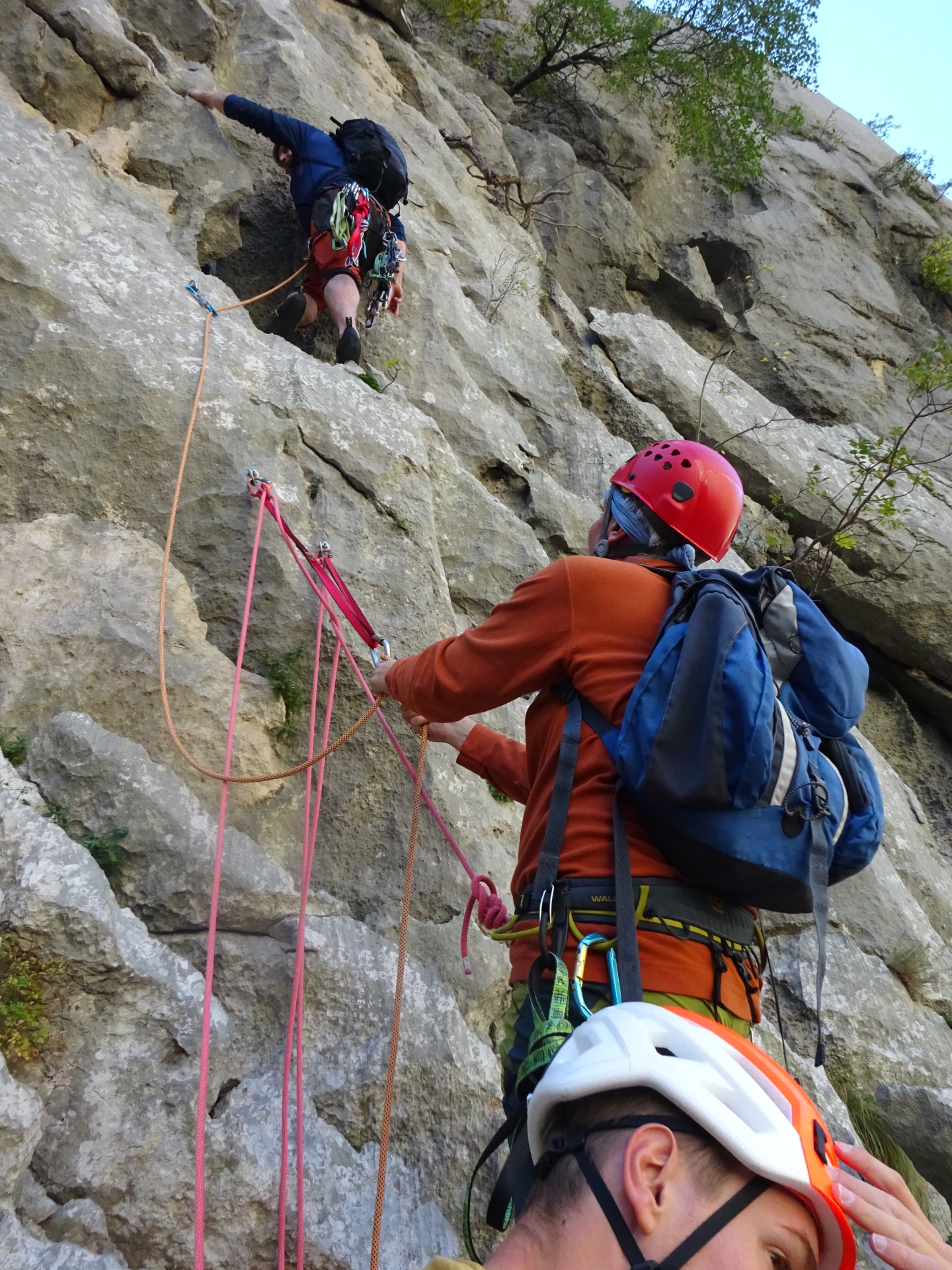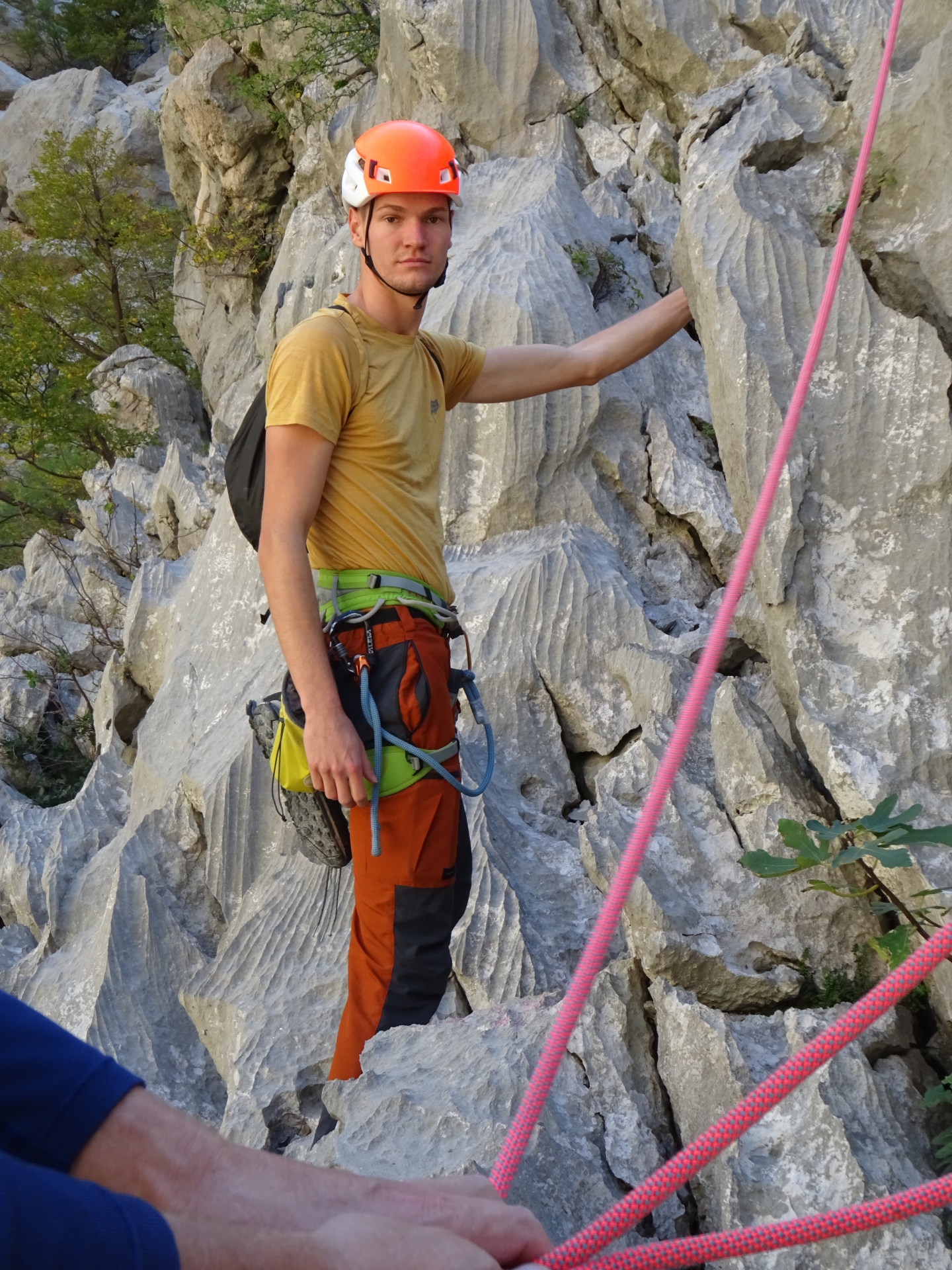 Komentar Dare je še ni plezal in sploh ni bilo vprašanje da bi jo tokrat izpustili. Smer je še vedno čudovito lepa z odličnim varovanjem. Plezali smo izmenično s tem, da je na mene padel 1. in 3. cug. Zraven nas pa je soliral Žiga, ki je smer splezal suvereno brez kančka nesigurnosti. Na dveh detajlih sem ugotavljal (v 2. in 3. cugu), da bi rabil svedrovec pred detajlom in ne šele po detajlu, sicer pa odlično varovanje. Z nami tokrat ni bila Laura, ker je imela študijske obveznosti. Na vrhu smeri sem se odločil, da s plezanjem za danes zaključim, ker me je spet začela boleti ahilova tetiva na levi nogi (to se mi vleče že dva meseca). Dare in Buča sta se odpravila v Čuk, jaz pa sem Žigija šel varovat v neko total zlizano sedmico na park placu. Žal mu je le malo zmanjkalo da je ne bi zlezel.