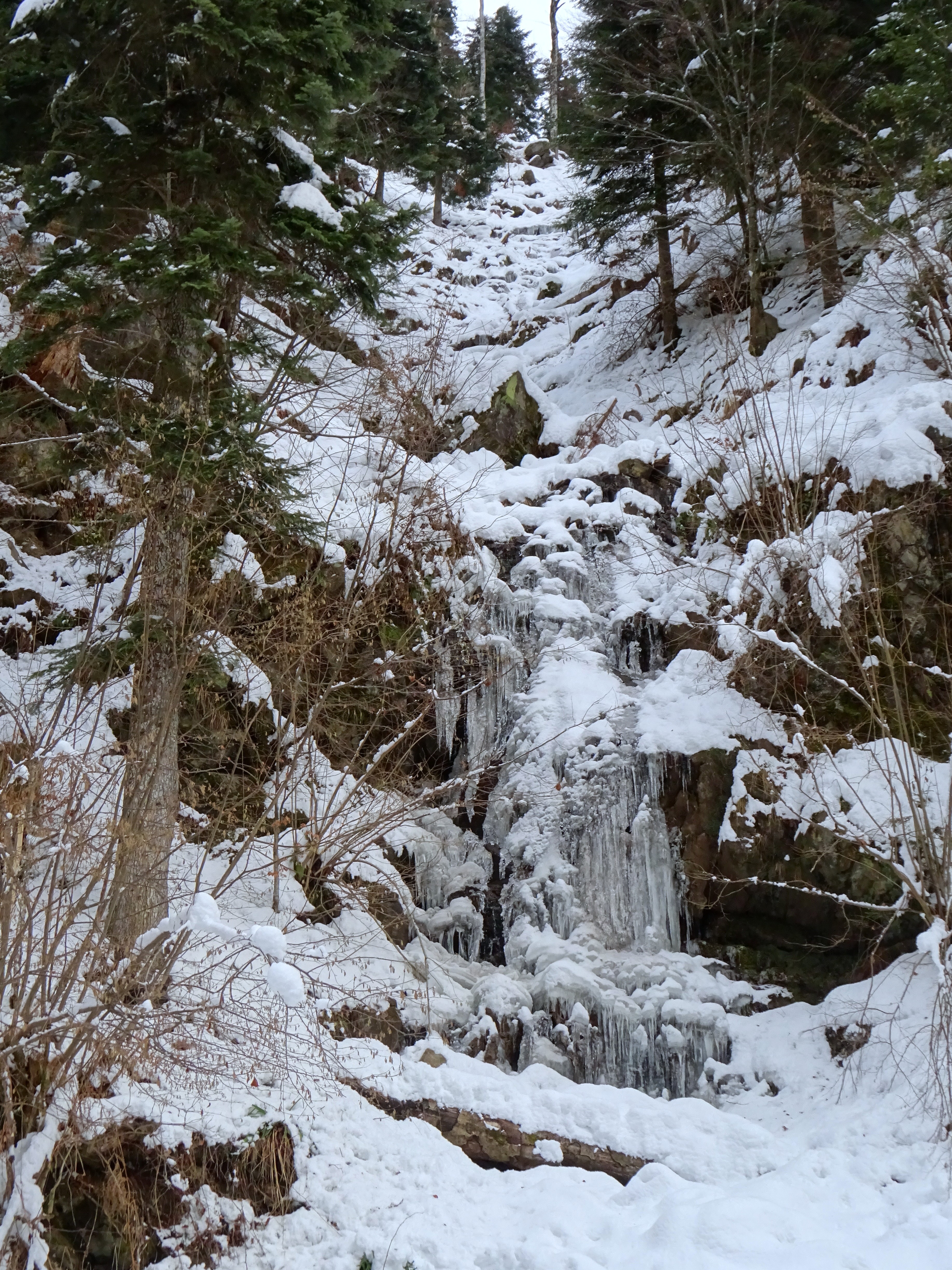 Po 14 dnevih mraza so se končno naredile razmere, da se ga je dalo kolikor toliko varno splezati. Plezanja je za 3 in pol raztežaje. Strmo je na začetku in na koncu, vmes pa bistveno lažje. Potencial nadaljevanja se je nakazoval, vendar naju je prehitela tema, ker sva pozno vstopila, služba pač. Med plezanjem sva imela obisk. Opazoval naju je gams. Pri izbiri imena pa je namesto Gamsov slap vseeno prevladalo mnenje od Žige in tako ima ime Pohorski biser, ker se tako redko naredi.